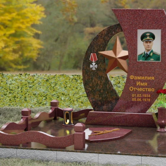 Кому подойдет: Данный мемориальный комплекс спроектирован для увековечивания памяти мужчин, чья жизнь была связана с воинским долгом, государственной службой или героическими поступками. Он станет достойным символом последнего пристанища для ветерана, кадрового офицера или человека с твердым характером. Армейская символика в сочетании с изысканным европейским стилем благоустройства (каменная ваза для живых цветов, лаконичная лампада на постаменте) подчеркивает уважение семьи к заслугам и личным качествам дорогого человека.