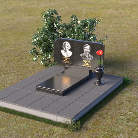 Памятник ПГ025 – это монументальное выражение скорби и вечной памяти. Его строгие линии и лаконичные формы говорят о сдержанной элегантности и глубоком уважении. Стела имеет прямоугольную форму, однако верхние углы скошены, что придает ей особую выразительность и визуальную легкость. Грани стелы тщательно отполированы, создавая зеркальную поверхность, которая отражает свет и придает камню глубину и благородство. На лицевой стороне стелы располагаются два портрета, выполненные с высокой степенью детализации. Под портретами выгравированы надписи, выполненные строгим шрифтом.