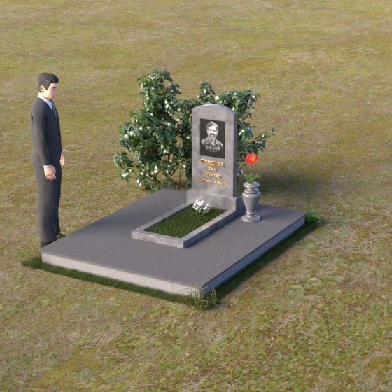 Благодаря своей лаконичной форме, эта стела предоставляет широкие возможности для оформления. Портрет усопшего будет гармонично смотреться как в верхней части стелы, так и чуть ниже центра. Золотое тиснение имени и дат жизни будет элегантно выделяться на фоне полированного камня, создавая четкий и легко читаемый образ. Небольшая тумба, расположенная перед стелой, может служить местом для возложения цветов и памятных вещей. Мы рекомендуем выбирать для этой модели сдержанные, лаконичные шрифты, которые подчеркнут общую элегантность композиции. Подумайте о возможности добавления небольшого бронзового барельефа или скульптуры, отражающей профессию или увлечения ушедшего человека. Это добавит индивидуальности и сделает место памяти еще более личным и значимым. Ваза, выполненная в едином стиле с монументом, завершит композицию и придаст ей законченный вид.