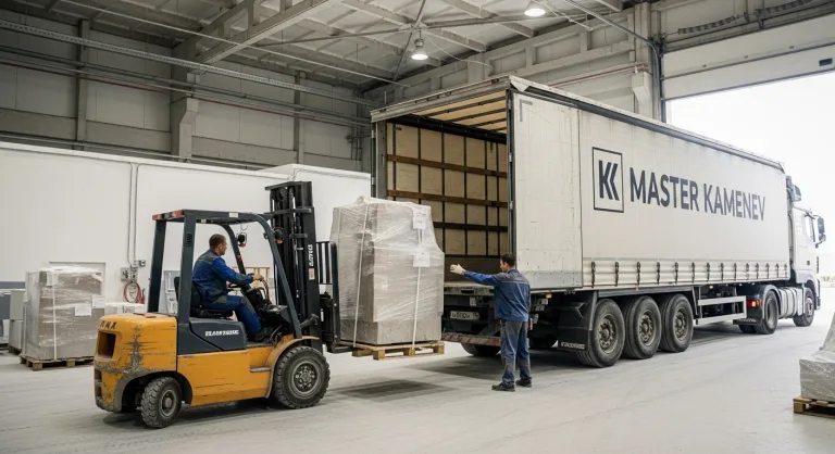 • Наша опытная команда. Доставку и разгрузку осуществляют только наши штатные специалисты. Это не наемные рабочие, а мастера, которые годами работают с натуральным камнем и знают все его особенности: вес, центр тяжести, хрупкие места. Вам не нужно будет искать грузчиков или беспокоиться о разгрузке и установке.