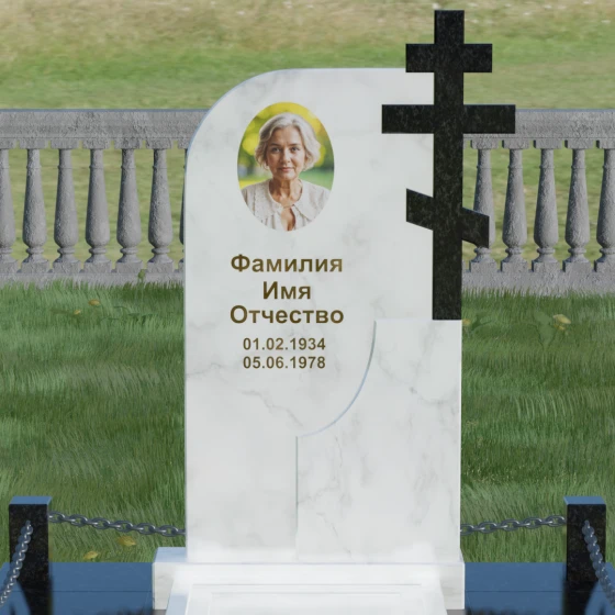 Выбор мемориального комплекса — это всегда глубоко личный процесс, стремление выразить в камне ту любовь и уважение, которые мы храним в сердце. Модель под артикулом 019 создана для тех, кто ценит благородную асимметрию и глубокий символизм. Величественная стела представляет собой сложную художественную композицию, в которой мастерски скомбинированы две контрастные фактуры. Левая часть памятника имеет мягкий, плавный изгиб, символизирующий завершенный жизненный путь, наполненный светом и душевным теплом. Правая же сторона акцентирована монументальным православным крестом, который является не просто элементом оформления, а неотъемлемой частью самой конструкции.