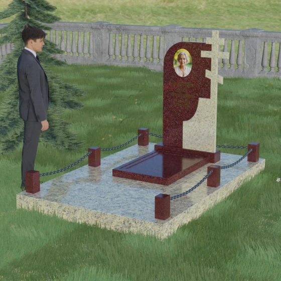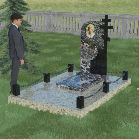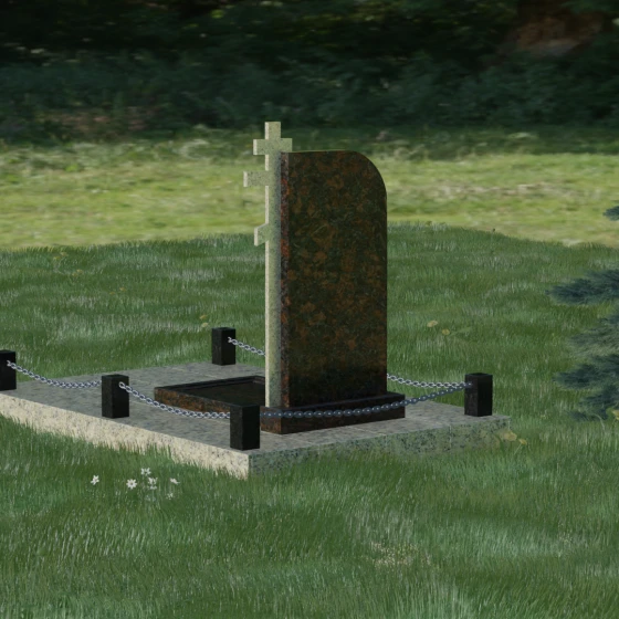 Завершенность композиции придает массивный гранитный цоколь и декоративное ограждение. По углам участка располагаются строгие каменные столбики с аккуратной фаской, соединенные декоративными цепями. Это создает четкие границы сакрального пространства, подчеркивая уединенность и покой. Каждый элемент — от массивного основания до вершины креста — подогнан с ювелирной точностью, формируя единый ансамбль, который будет служить достойным воплощением вашей памяти. Мы поможем вам на каждом этапе, чтобы этот сложный выбор стал шагом к обретению душевного равновесия и созданию места, куда захочется приходить для тихой беседы с тем, кто навсегда остался в вашем сердце.