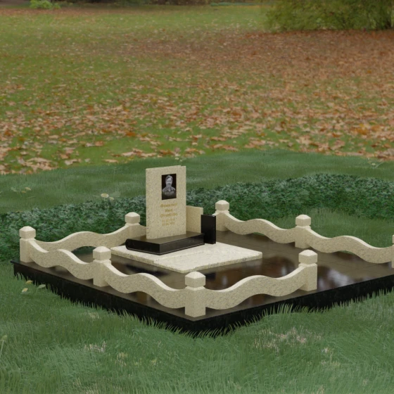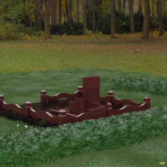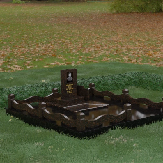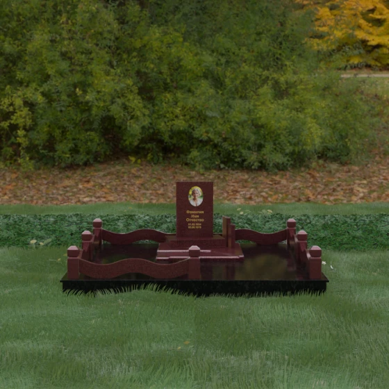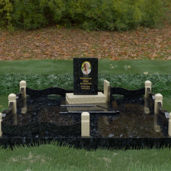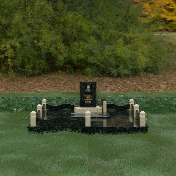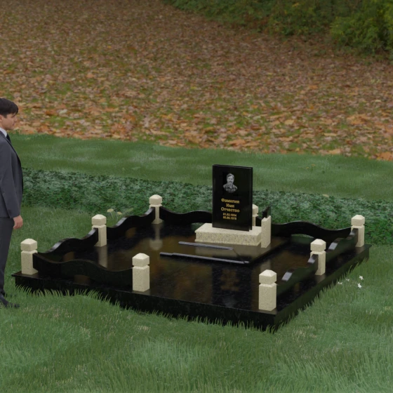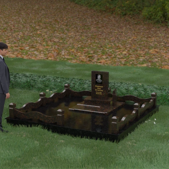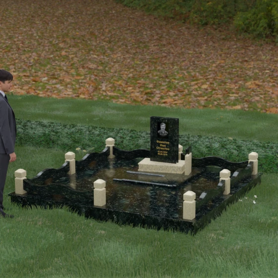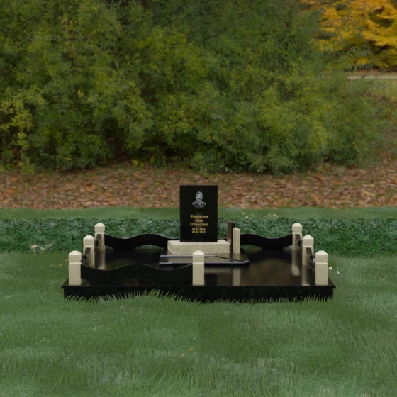 Кому подойдет: Данная модель является универсальным решением для тех, кто ищет комплексный подход к оформлению захоронения. Строгие линии центрального блока позволяют установить его как мужчине, так и женщине, подчеркивая статус и уважение к личности. Благодаря наличию полноразмерного фундамента и ограждения, этот вариант идеален для семей, которые хотят один раз и навсегда благоустроить участок, обеспечив ему достойный вид без необходимости регулярного сложного обслуживания. Это выбор в пользу вечности, массивности и архитектурного совершенства.