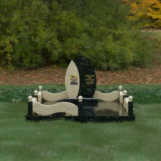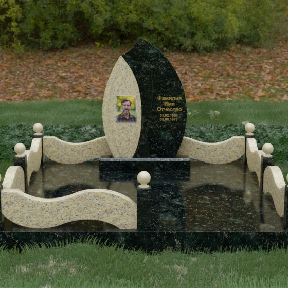 Конфигурация данной модели продумана с учетом эргономики мемориального искусства. Светлая часть вертикального элемента предназначена для нанесения фотокерамики или гравированного портрета — на светлом фоне черты лица выглядят мягче и отчетливее. Темная сторона с безупречной полировкой идеально подходит для золоченой гравировки или накладных букв: фамилия, имя и даты жизни будут читаться легко даже с большого расстояния, сохраняя четкость контуров под любым углом освещения.
