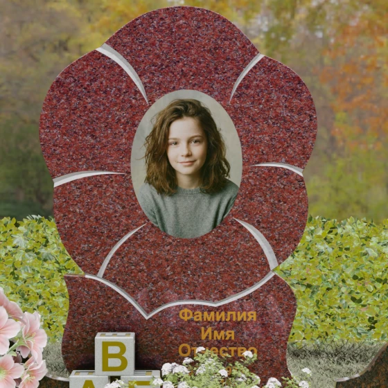 Каждая деталь этого проекта наполнена глубоким смыслом. Цветок в мемориальной пластике традиционно символизирует чистоту души, её расцвет и вечную весну в ином мире. Плавные, текучие линии боковых граней олицетворяют покой и отсутствие земных тревог. Декоративные резные блоки у основания напоминают о начале жизненного пути, о безмятежности и искренности, что делает эту модель особенно подходящей для увековечивания молодых и светлых личностей. Этот ансамбль создает ощущение защиты и умиротворения, превращая место захоронения в пространство светлой печали.