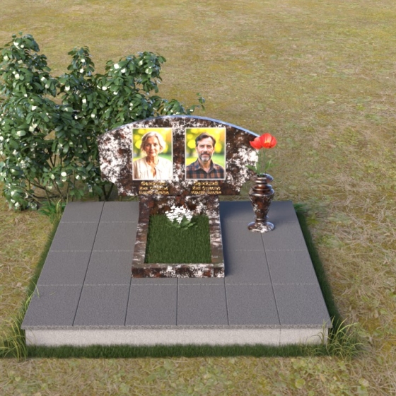 Эта мемориальная композиция, артикул ПГ023, воплощает собой сдержанную элегантность и глубокое уважение к ушедшим. Ее плавные, скруглённые линии словно рассказывают историю жизни, полной взлетов и падений, радостей и печалей, и теперь нашедшей свой покой. Верхняя часть стелы имеет мягкий, дугообразный изгиб, напоминающий о небесном своде, под которым души обретают вечный приют. Зеркальная полировка камня отражает свет, создавая ощущение легкости и воздушности, а контраст с матовой поверхностью гравировки портретов придает изображению глубину и выразительность. Простота формы не отвлекает от главного – светлых образов тех, кто дорог нашему сердцу.
