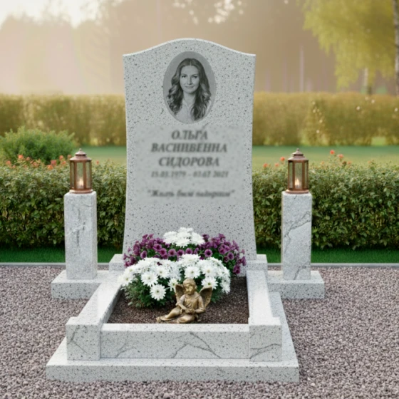 Представленный мемориальный комплекс выполнен из высококачественного гранита — материала, который по праву считается эталоном прочности и долговечности. Гранит обладает уникальной плотностью, что обеспечивает его исключительную устойчивость к любым погодным условиям, будь то суровые морозы, палящее солнце или проливные дожди. Его низкая пористость гарантирует, что камень не будет впитывать влагу и разрушаться со временем, сохраняя свой первозданный вид на протяжении веков. Зеркальная полировка поверхности не только придает граниту благородный блеск, но и защищает его от внешних воздействий, делая уход за памятником минимальным. Этот материал не требует особого ухода, достаточно периодически протирать его влажной тканью, чтобы сохранить его безупречный вид. Выбирая гранит, вы выбираете вечность, гарантируя, что память о близком человеке будет увековечена в камне, который не подвластен времени.