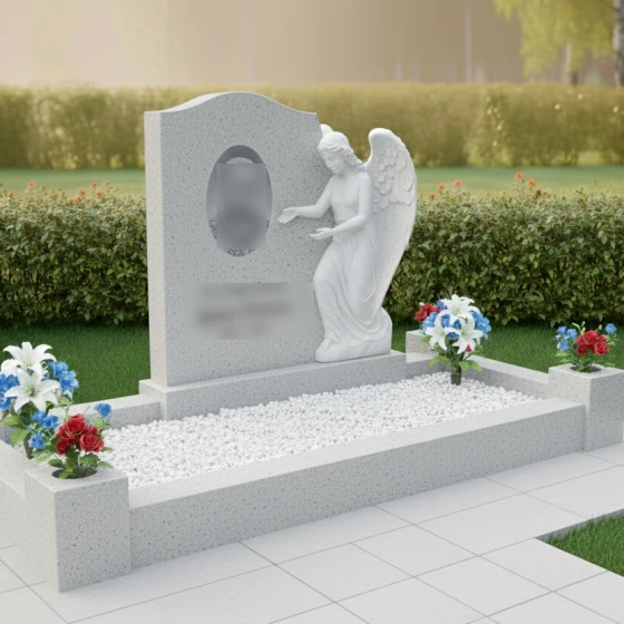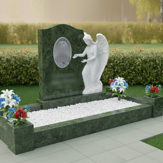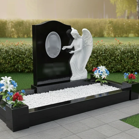 Кому подойдет: Эта модель является универсальным и в то же время глубоко личным выбором. Благодаря фигуре ангела, она идеально подходит для оформления женских захоронений (матери, жены, дочери), символизируя чистоту души и бесконечную любовь. Однако, строгость гранитных форм и массивность цоколя позволяют устанавливать этот комплекс и на семейных участках, где требуется создать атмосферу защищенности, покоя и незыблемой памяти, которая будет передаваться из поколения в поколение.