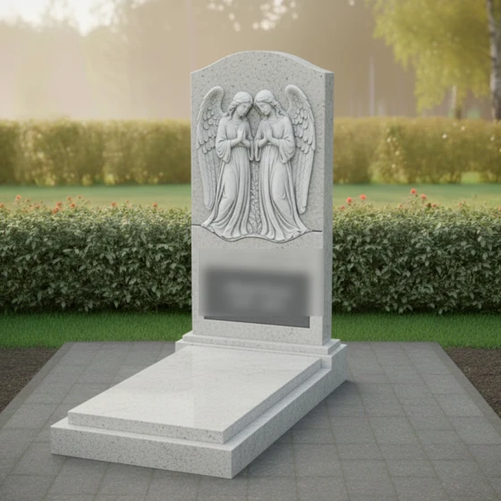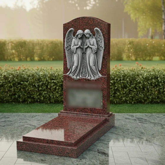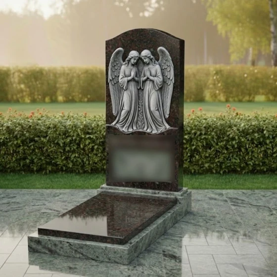 Кому подойдет: Данная модель является универсальным воплощением нежности и защиты. Благодаря присутствию ангелов-хранителей, памятник чаще всего выбирают для оформления женских захоронений — для матери, супруги, дочери или сестры. Фигуры молящихся ангелов символизируют вечное заступничество и покой души. В светлом исполнении (Мансуровский гранит или мрамор Тассо) мемориал выглядит особенно трогательно, олицетворяя чистоту и светлую память, в то время как темные виды гранита подчеркивают торжественность и величие момента прощания.