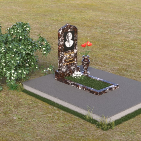 Форма этого гранитного монумента идеально подходит для размещения портрета усопшего. Благодаря своей вытянутой форме, он позволяет создать гармоничную композицию, где портрет будет занимать центральное место и привлекать к себе внимание. Золотое начертание имени и дат жизни на фоне темного полированного гранита выглядит особенно торжественно и выразительно. Вы можете выбрать любой из восьми доступных вариантов камня, чтобы подчеркнуть индивидуальность образа и создать памятник, который будет полностью соответствовать вашим представлениям о красоте и гармонии. Гранит амфиболит с его неповторимыми разводами, Балтик грин с его мягким зеленым оттенком, Блю Перл с его искрящимися вкраплениями, Габбро-диабаз с его глубоким черным цветом, Дымовский с его теплым коричневым оттенком, Лезниковский с его насыщенным красным цветом, Мансуровский с его светлым и благородным видом, или же классический мрамор Тассос – каждый из этих камней обладает своим уникальным характером и способен передать всю глубину ваших чувств. Подберите камень, который лучше всего отражает характер человека, которому посвящен этот гранитный монумент.